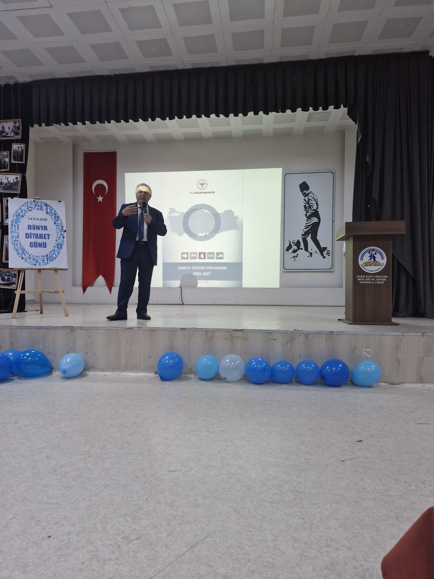 Habip Edip Törehan Mesleki ve Teknik Anadolu Lisesi Hasta ve Yaşlı Hizmetleri alanının 14 Kasım Dünya Diyabet Günü kapsamında düzenlemiş olduğu "Diyabet Farkındalık" programına Eskişehir Osmangazi Üniversitesi ESTÜDAM Müdürü Sayın Prof. Dr. Hilmi ÖZDEN misafir konuşmacı olarak katılmış, diyabet konusunda katılımcıları bilgilendirmiştir. Konuşma sonrası Tepebaşı Kaymakamı Sayın Sadettin YÜCEL plaket takdiminde bulunmuştur.